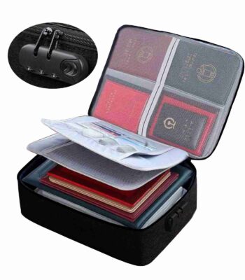 Passport Holder | Travel Document Bag | File Organiser | Case with Lock – Fabric Black
