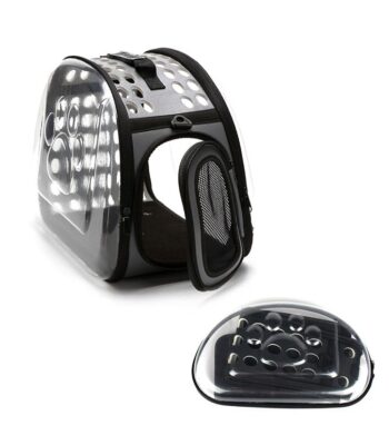 Pet Carrier | Foldable Travel Portable Bag (Paw Print, Clear Window, Grey) – Small