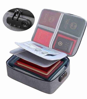 A portable & lockable bag for storing passports, documents and other items. Perfect for travelling, work and home storage.