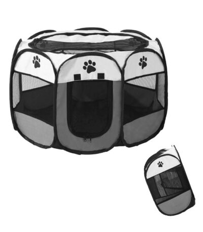 Pet Carrier | Foldable Travel Portable Bag (Paw Print, Clear Window, Grey) – Small