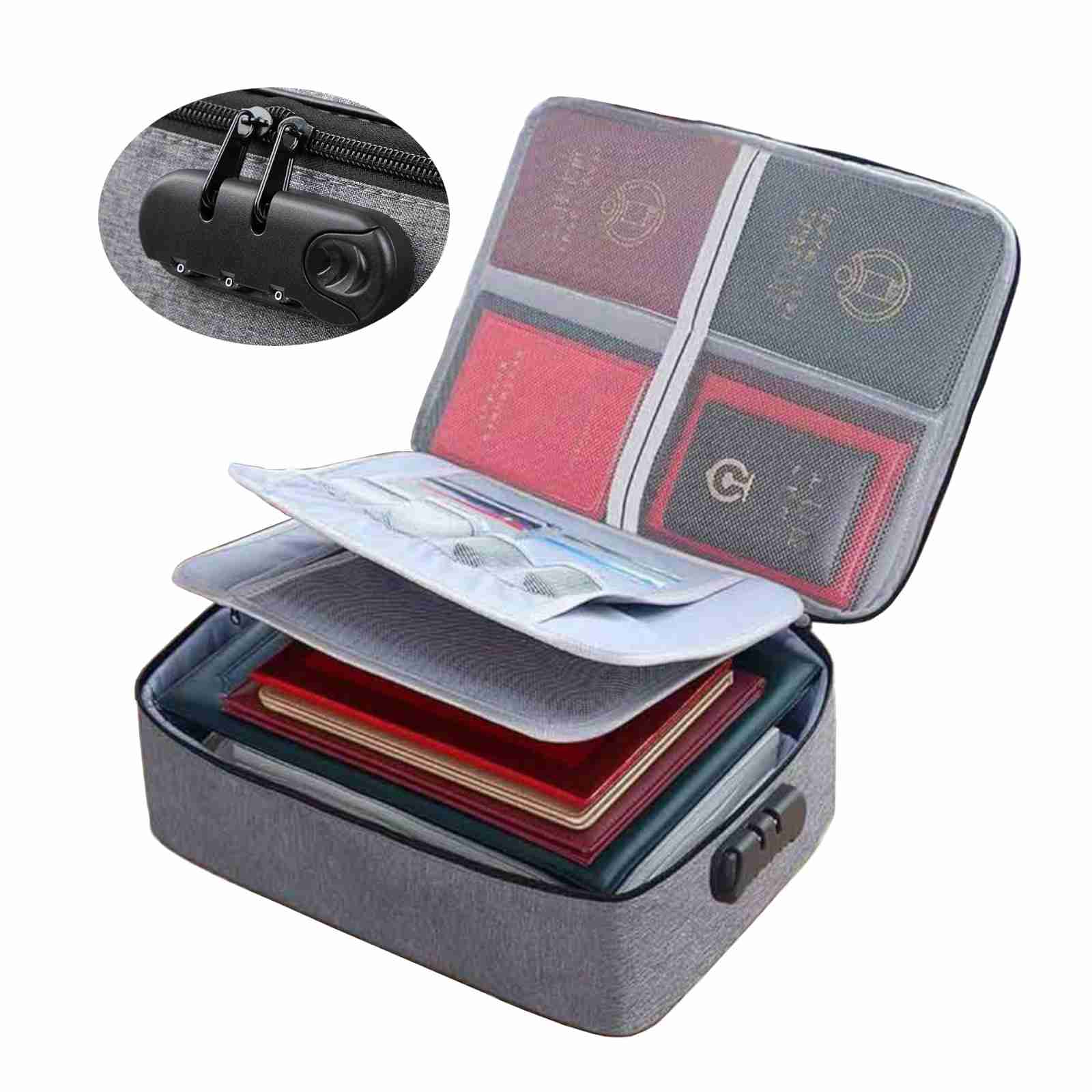 Passport Holder | Travel Document Bag | File Organiser | Case with Lock – Fabric Grey