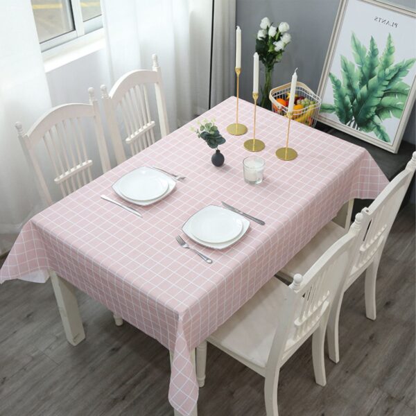 Table Cloth Cover (Checkered Plaid Pattern, 137x180cm) – White
